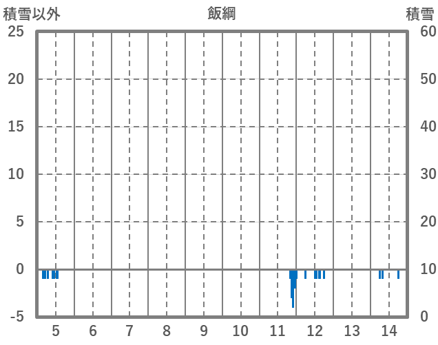 | 日 | 時 | 気温 | 降水 | 風向/風速 | 日照 | 積雪 | 降雪 |