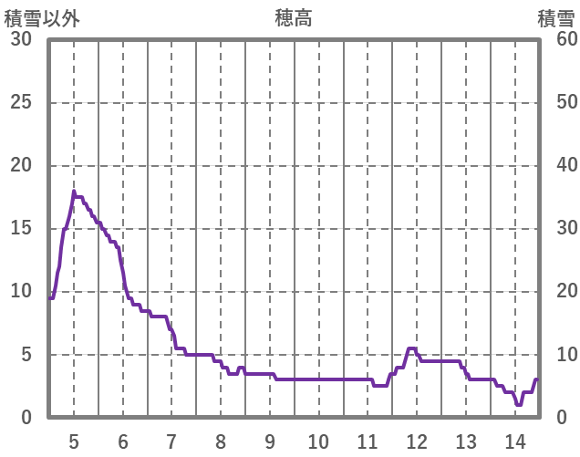 | 日 | 時 | 気温 | 降水 | 風向/風速 | 日照 | 積雪 | 降雪 |