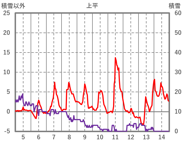 | 日 | 時 | 気温 | 降水 | 風向/風速 | 日照 | 積雪 | 降雪 |