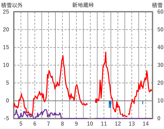 | 日 | 時 | 気温 | 降水 | 風向/風速 | 日照 | 積雪 | 降雪 |