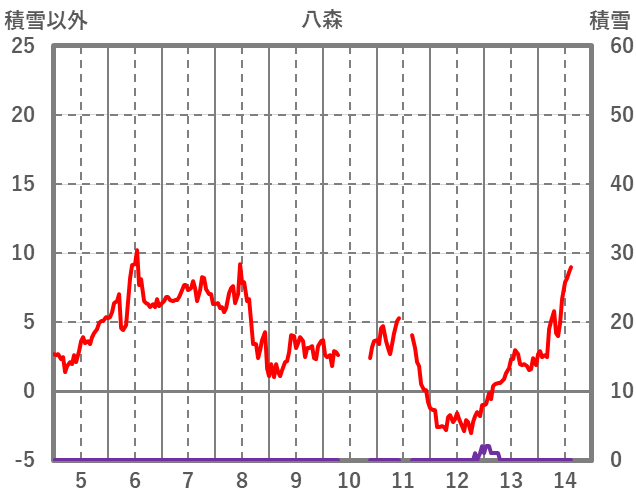 | 日 | 時 | 気温 | 降水 | 風向/風速 | 日照 | 積雪 | 降雪 |