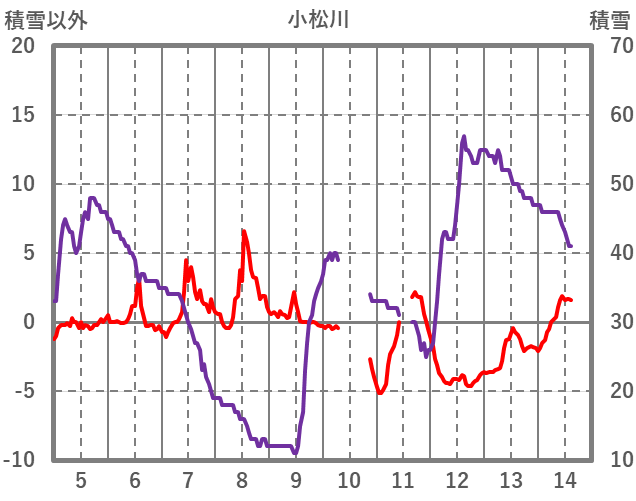 | 日 | 時 | 気温 | 降水 | 風向/風速 | 日照 | 積雪 | 降雪 |