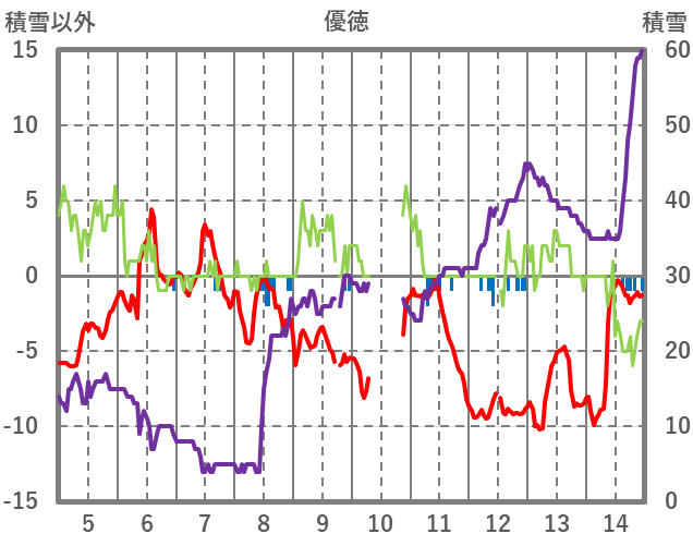 | 日 | 時 | 気温 | 降水 | 風向/風速 | 日照 | 積雪 | 降雪 |