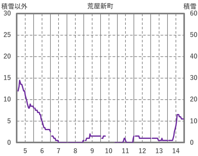 | 日 | 時 | 気温 | 降水 | 風向/風速 | 日照 | 積雪 | 降雪 |