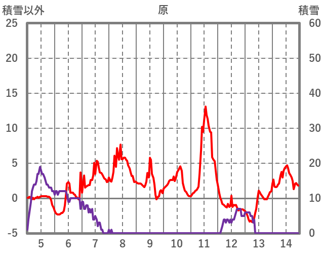 | 日 | 時 | 気温 | 降水 | 風向/風速 | 日照 | 積雪 | 降雪 |