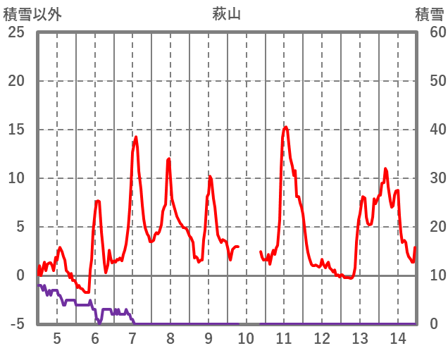 | 日 | 時 | 気温 | 降水 | 風向/風速 | 日照 | 積雪 | 降雪 |