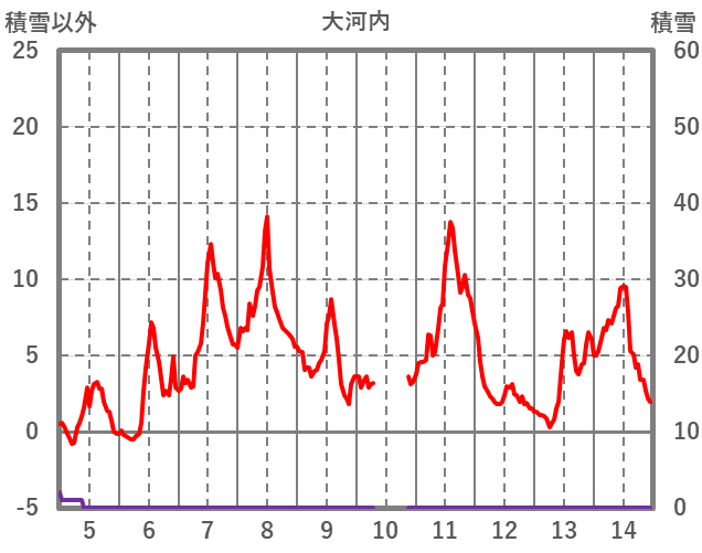 | 日 | 時 | 気温 | 降水 | 風向/風速 | 日照 | 積雪 | 降雪 |