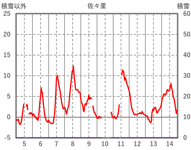 | 日 | 時 | 気温 | 降水 | 風向/風速 | 日照 | 積雪 | 降雪 |
