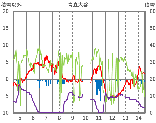 | 日 | 時 | 気温 | 降水 | 風向/風速 | 日照 | 積雪 | 降雪 |