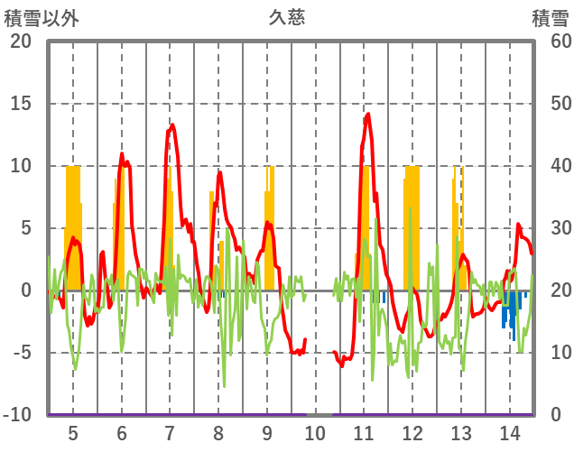 | 日 | 時 | 気温 | 降水 | 風向/風速 | 日照 | 積雪 | 降雪 |