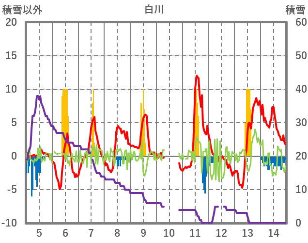| 日 | 時 | 気温 | 降水 | 風向/風速 | 日照 | 積雪 | 降雪 |