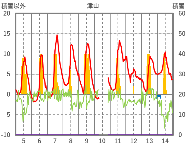 | 日 | 時 | 気温 | 降水 | 風向/風速 | 日照 | 積雪 | 降雪 |