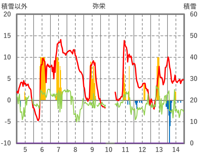 | 日 | 時 | 気温 | 降水 | 風向/風速 | 日照 | 積雪 | 降雪 |
