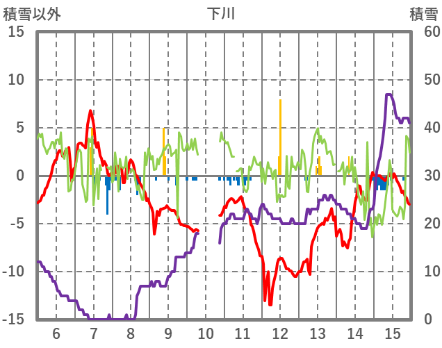 | 日 | 時 | 気温 | 降水 | 風向/風速 | 日照 | 積雪 | 降雪 |