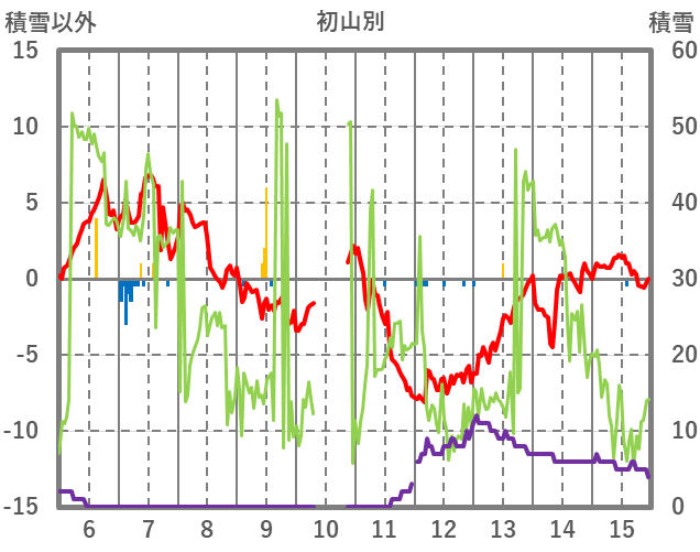 | 日 | 時 | 気温 | 降水 | 風向/風速 | 日照 | 積雪 | 降雪 |