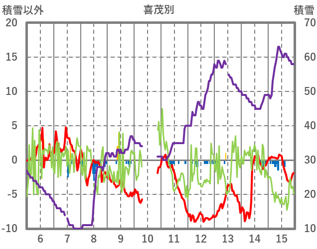 | 日 | 時 | 気温 | 降水 | 風向/風速 | 日照 | 積雪 | 降雪 |