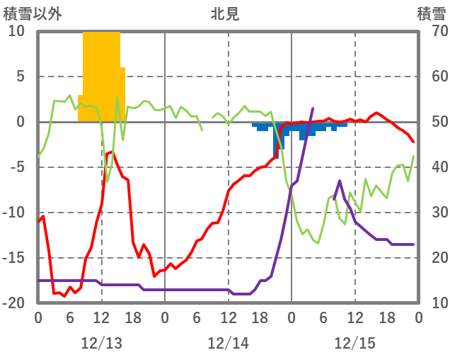 | 日 | 時 | 気温 | 降水 | 風向/風速 | 日照 | 積雪 | 降雪 |