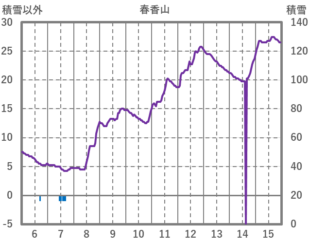 | 日 | 時 | 気温 | 降水 | 風向/風速 | 日照 | 積雪 | 降雪 |