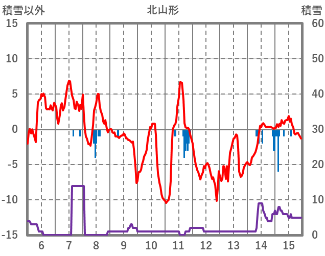 | 日 | 時 | 気温 | 降水 | 風向/風速 | 日照 | 積雪 | 降雪 |