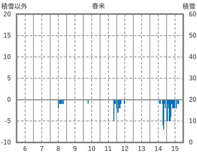 | 日 | 時 | 気温 | 降水 | 風向/風速 | 日照 | 積雪 | 降雪 |