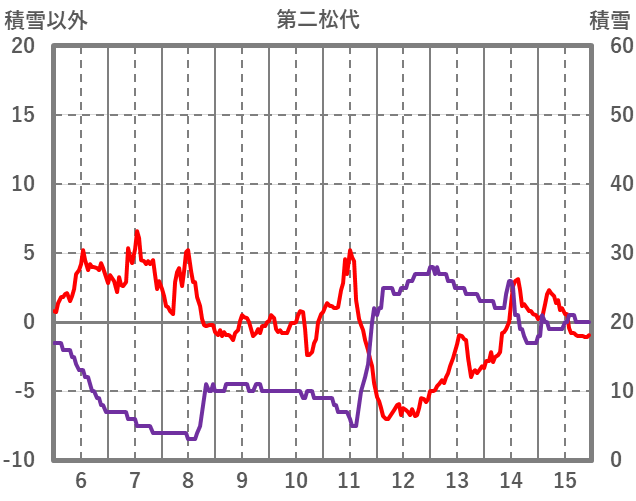| 日 | 時 | 気温 | 降水 | 風向/風速 | 日照 | 積雪 | 降雪 |