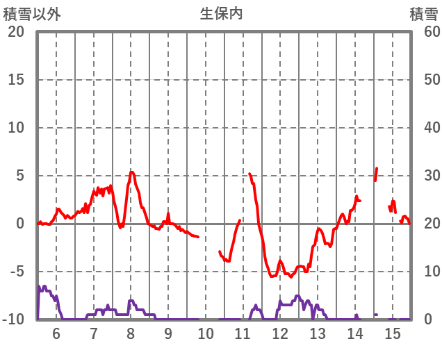 | 日 | 時 | 気温 | 降水 | 風向/風速 | 日照 | 積雪 | 降雪 |