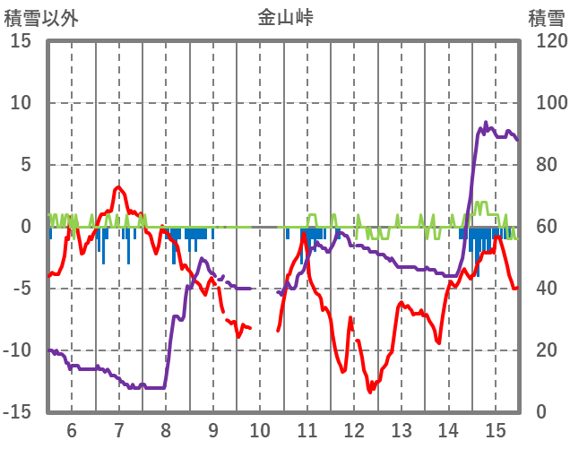 | 日 | 時 | 気温 | 降水 | 風向/風速 | 日照 | 積雪 | 降雪 |