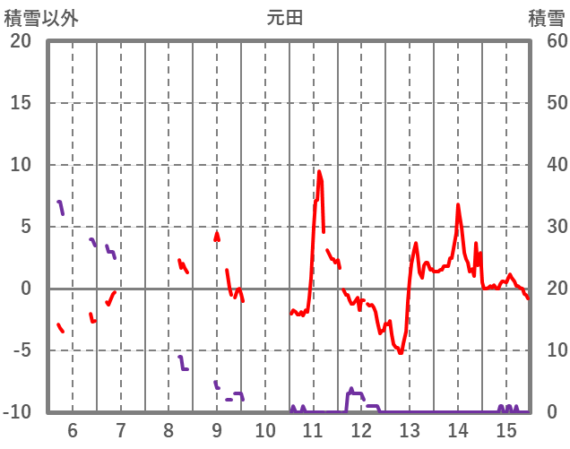 | 日 | 時 | 気温 | 降水 | 風向/風速 | 日照 | 積雪 | 降雪 |
