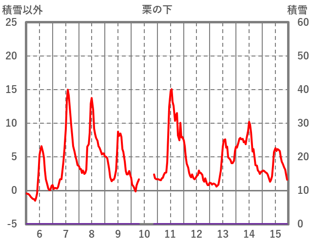 | 日 | 時 | 気温 | 降水 | 風向/風速 | 日照 | 積雪 | 降雪 |