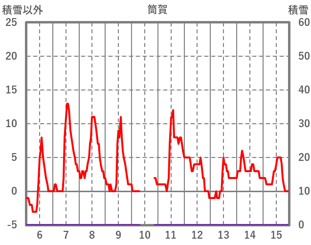 | 日 | 時 | 気温 | 降水 | 風向/風速 | 日照 | 積雪 | 降雪 |