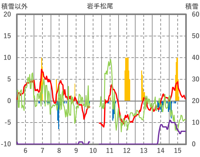 | 日 | 時 | 気温 | 降水 | 風向/風速 | 日照 | 積雪 | 降雪 |