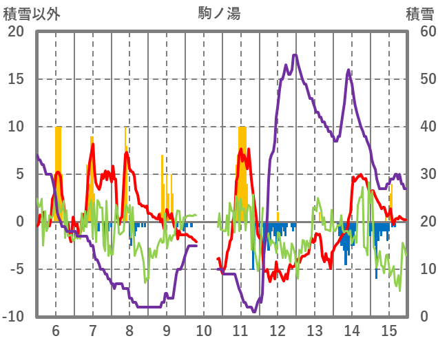 | 日 | 時 | 気温 | 降水 | 風向/風速 | 日照 | 積雪 | 降雪 |