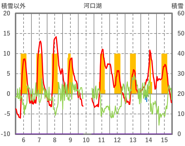 | 日 | 時 | 気温 | 降水 | 風向/風速 | 日照 | 積雪 | 降雪 |