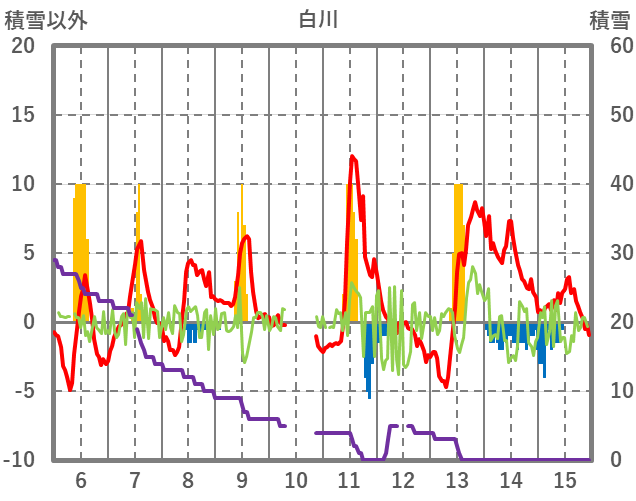| 日 | 時 | 気温 | 降水 | 風向/風速 | 日照 | 積雪 | 降雪 |