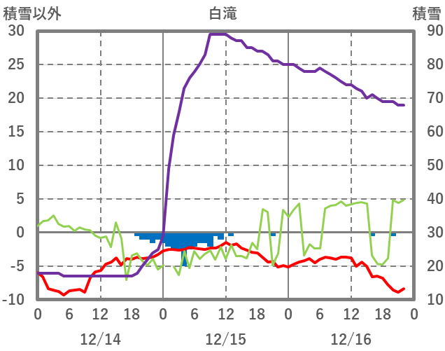 | 日 | 時 | 気温 | 降水 | 風向/風速 | 日照 | 積雪 | 降雪 |