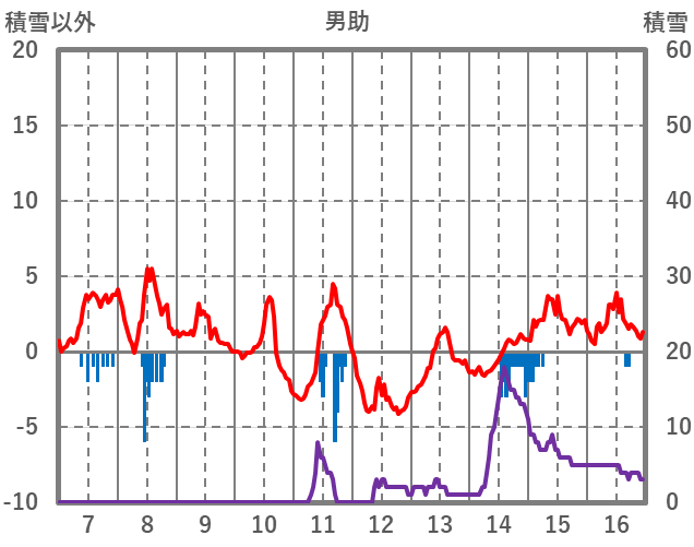 | 日 | 時 | 気温 | 降水 | 風向/風速 | 日照 | 積雪 | 降雪 |