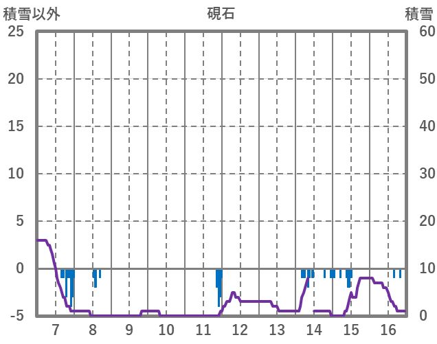 | 日 | 時 | 気温 | 降水 | 風向/風速 | 日照 | 積雪 | 降雪 |