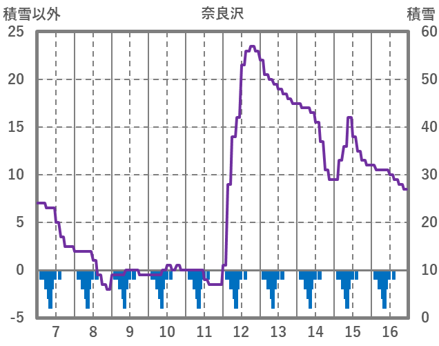| 日 | 時 | 気温 | 降水 | 風向/風速 | 日照 | 積雪 | 降雪 |