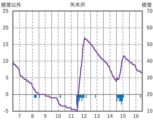 | 日 | 時 | 気温 | 降水 | 風向/風速 | 日照 | 積雪 | 降雪 |