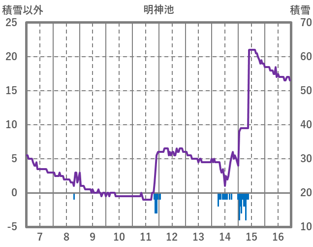| 日 | 時 | 気温 | 降水 | 風向/風速 | 日照 | 積雪 | 降雪 |