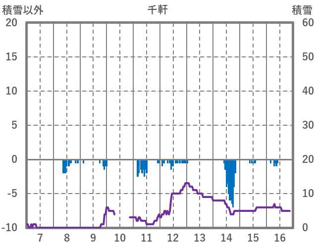 | 日 | 時 | 気温 | 降水 | 風向/風速 | 日照 | 積雪 | 降雪 |