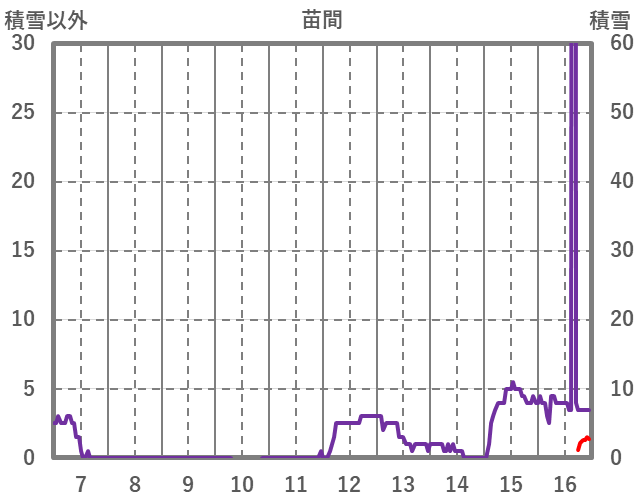 | 日 | 時 | 気温 | 降水 | 風向/風速 | 日照 | 積雪 | 降雪 |