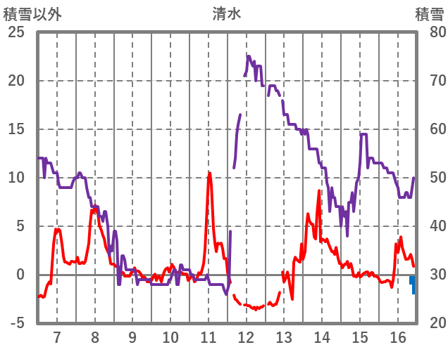 | 日 | 時 | 気温 | 降水 | 風向/風速 | 日照 | 積雪 | 降雪 |