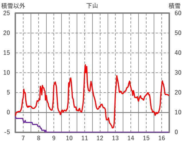 | 日 | 時 | 気温 | 降水 | 風向/風速 | 日照 | 積雪 | 降雪 |