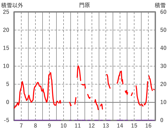 | 日 | 時 | 気温 | 降水 | 風向/風速 | 日照 | 積雪 | 降雪 |