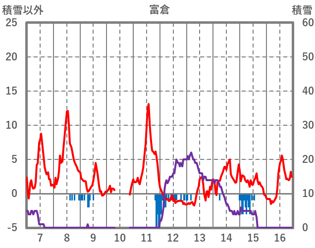 | 日 | 時 | 気温 | 降水 | 風向/風速 | 日照 | 積雪 | 降雪 |