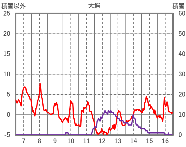 | 日 | 時 | 気温 | 降水 | 風向/風速 | 日照 | 積雪 | 降雪 |