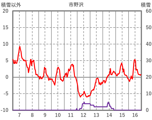 | 日 | 時 | 気温 | 降水 | 風向/風速 | 日照 | 積雪 | 降雪 |