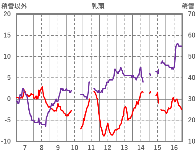 | 日 | 時 | 気温 | 降水 | 風向/風速 | 日照 | 積雪 | 降雪 |