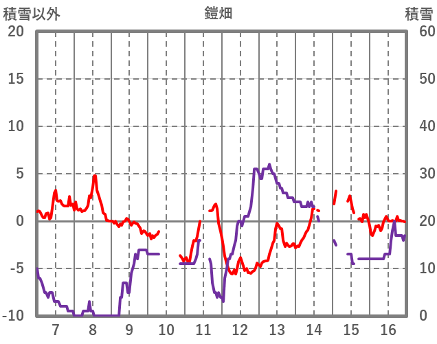 | 日 | 時 | 気温 | 降水 | 風向/風速 | 日照 | 積雪 | 降雪 |